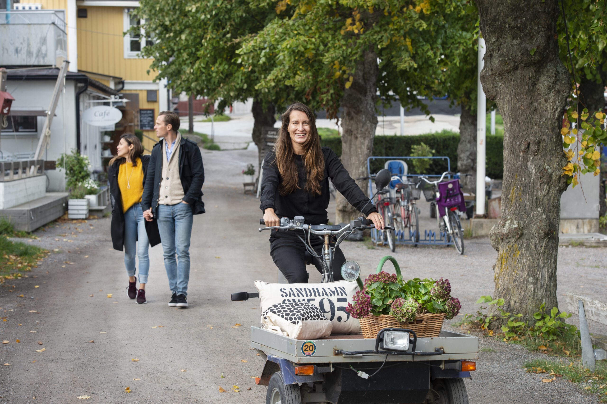 Du börjar dagen med att cykla några kilometer för att ta färjan till den idylliska ön Sandön med byn Sandhamn. Sandhamn är antagligen den mest kända platsen i Stockholms skärgård. Hamnen är full av besökande båtar och turister som flanerar i hamnen, där du hittar kaféer, barer, restauranger och butiker. Om du beger dig från hamnen kommer du till långa sandstränder med vacker utsikt över havet. Det är en liten ö, och även om det är möjligt att cykla på några av grusvägarna på ön, är du här främst för att njuta av atmosfären, den pittoreska byn och kanske ta ett dopp i havet.