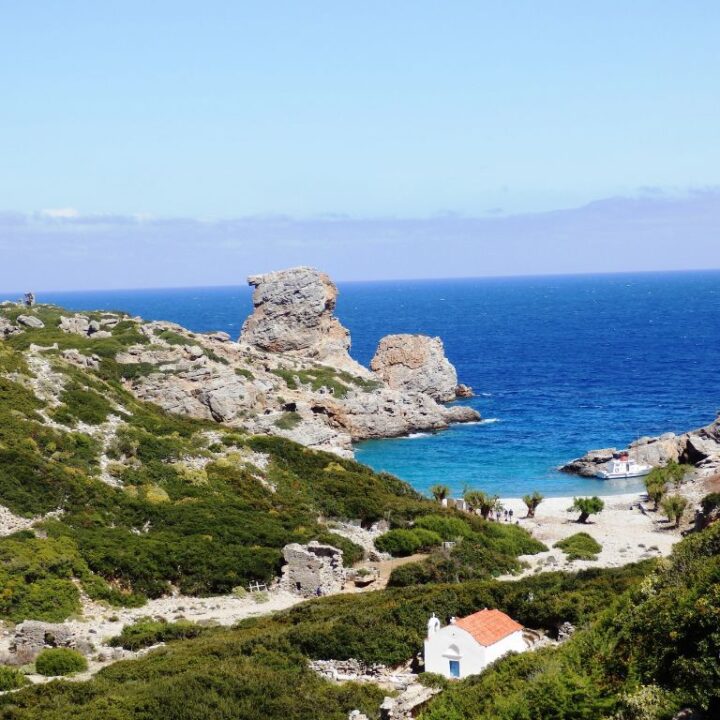 Karpathos ligger mellan Kreta och Rhodos och är en välbevarad hemlighet som bjuder sina besökare på en unik kombination av traditioner, folklore och varm gästfrihet. Ön har ett omfattande nätverk av gamla vandringsleder i inlandet, vilket gör att du kan njuta av panoramautsikt över både bergen och den dramatiska kusten.